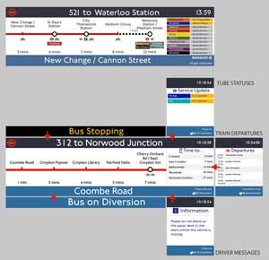 mDIS can display route ladders, journey times, This Stop and Next Stop information, safety announcements such as “mind the gap”, live traffic information, interchange and connection information and related transport timetables.