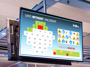 The Health & Safety module allows critical safety information to be displayed to a workforce in a clear and unmissable way. Specific templates are available to show important updates such as days since last accident and fire evacuation information, Navaho can even customise templates to match your company's brand identity.